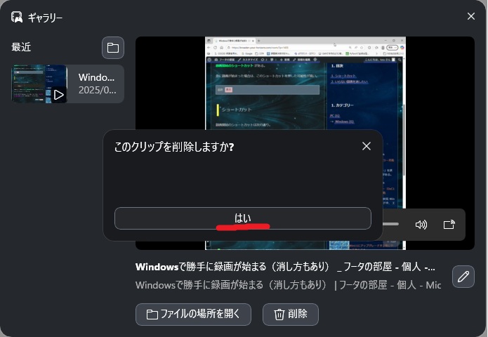 - 急に録画が始まった場合は、このショートカットを押した可能性が高い。