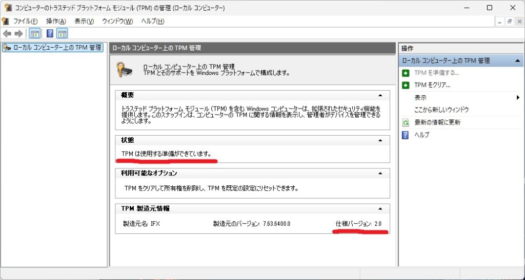 TPMのバージョンや利用可能な状態かの確認方法について記載する。